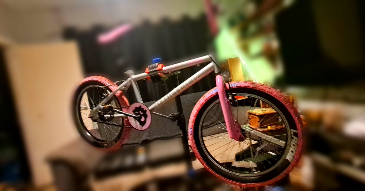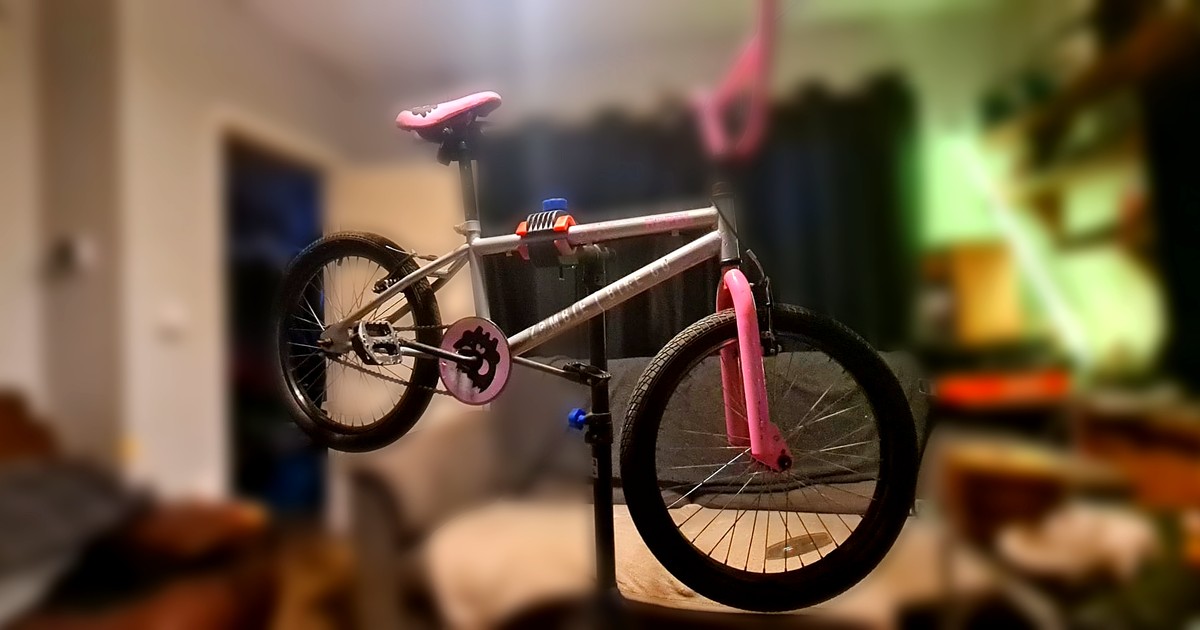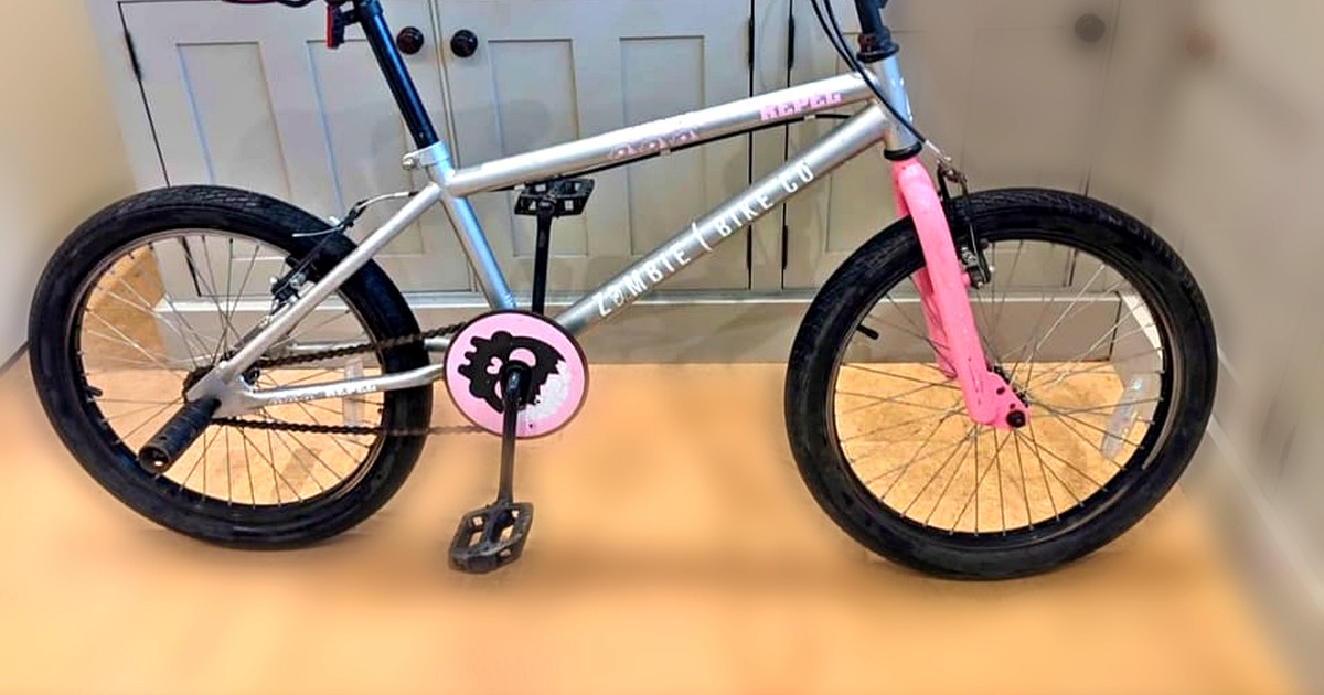 Indigo has Bike Ability coming up at school and needed a bike. I picked up a Zombie Bike Co BMX — silver frame, pink forks, bars and saddle. Clean enough out of the box. But you know how it is.