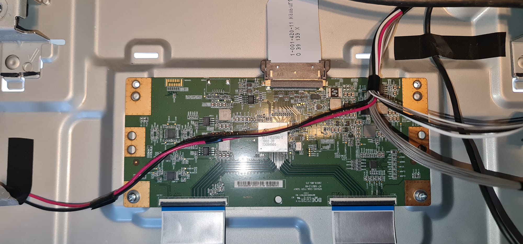 We swapped in the original T-con to rule out a bad replacement. Same result. Two different T-con boards, same dead screen. The T-con was never the fault.